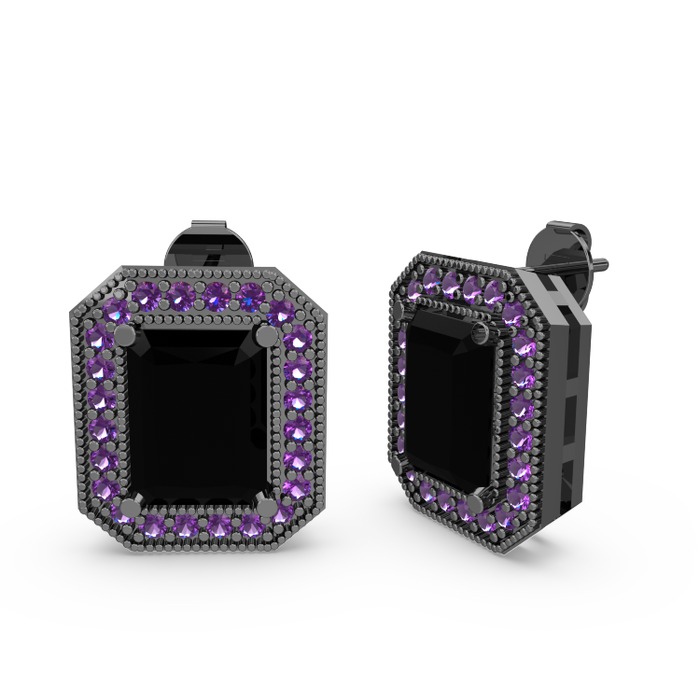 Siyah zirkon ve ametist 925 ayar siyah rodyum kaplama gümüş küpe