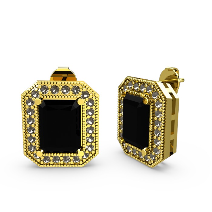 Siyah zirkon ve dumanlı kuvars 18 ayar altın küpe