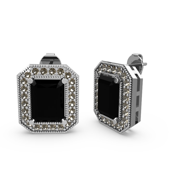 Siyah zirkon ve dumanlı kuvars 8 ayar beyaz altın küpe