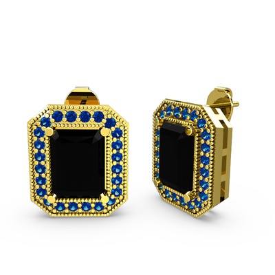 Siyah zirkon ve lab safir 14 ayar altın küpe