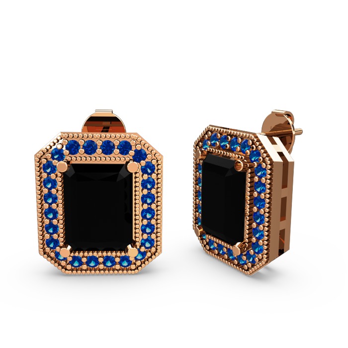Siyah zirkon ve lab safir 8 ayar rose altın küpe