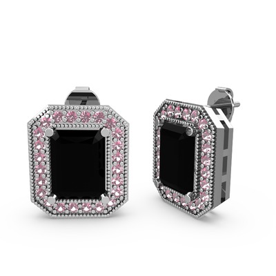 Siyah zirkon ve pembe kuvars 8 ayar beyaz altın küpe