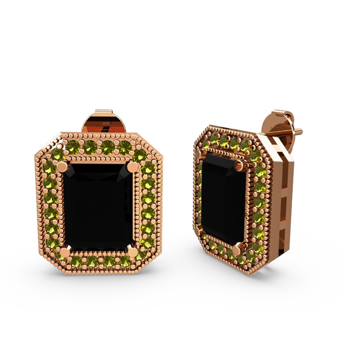 Siyah zirkon ve peridot 14 ayar rose altın küpe