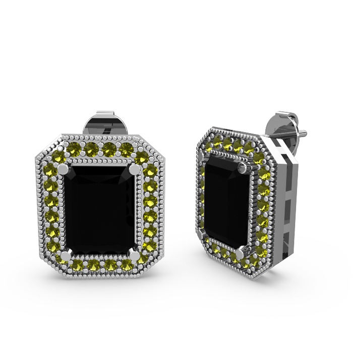 Siyah zirkon ve peridot 18 ayar beyaz altın küpe