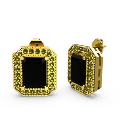 Siyah zirkon ve peridot 8 ayar altın küpe