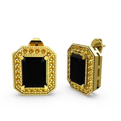 Siyah zirkon ve sitrin 8 ayar altın küpe