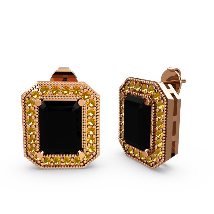 Siyah zirkon ve sitrin 925 ayar rose altın kaplama gümüş küpe
