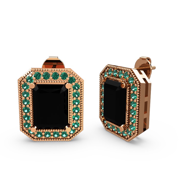 Siyah zirkon ve yeşil kuvars 18 ayar rose altın küpe