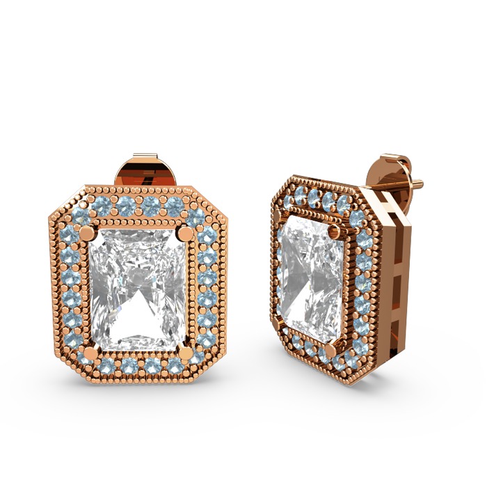 Swarovski ve akuamarin 14 ayar rose altın küpe