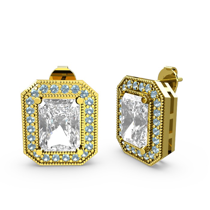 Swarovski ve akuamarin 8 ayar altın küpe