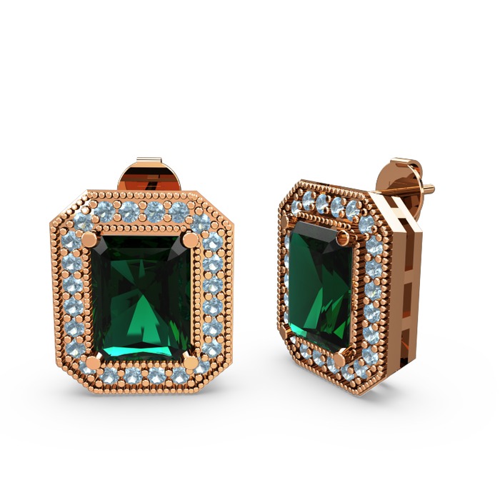 Yeşil kuvars ve akuamarin 18 ayar rose altın küpe