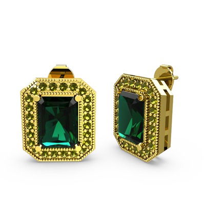 Yeşil kuvars ve peridot 14 ayar altın küpe