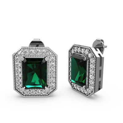 Yeşil kuvars ve swarovski 14 ayar beyaz altın küpe