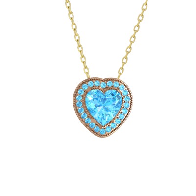 Akuamarin 18 ayar rose altın kolye (40 cm gümüş rolo zincir)