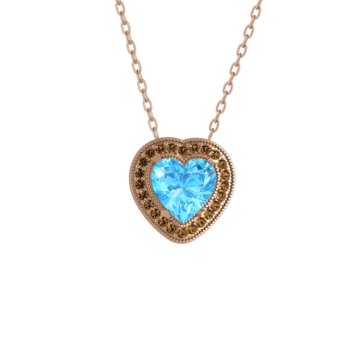 Akuamarin ve dumanlı kuvars 18 ayar rose altın kolye (40 cm gümüş rolo zincir)