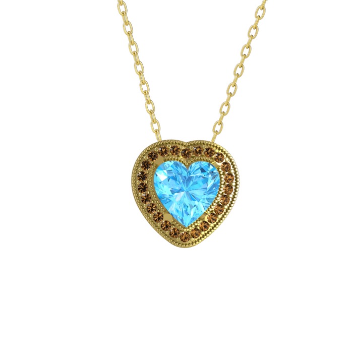 Akuamarin ve dumanlı kuvars 925 ayar altın kaplama gümüş kolye (40 cm altın rolo zincir)