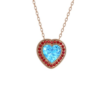 Akuamarin ve garnet 14 ayar rose altın kolye (40 cm rose altın rolo zincir)