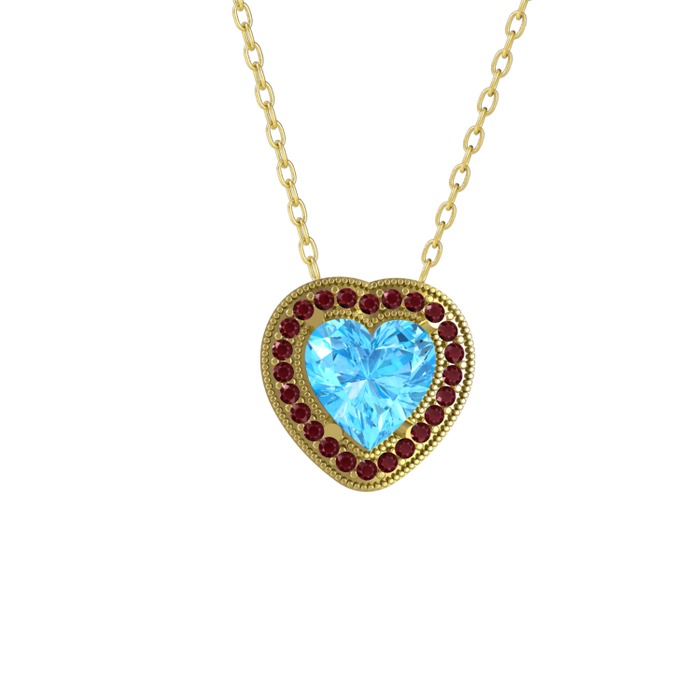 Akuamarin ve kök yakut 14 ayar altın kolye (40 cm altın rolo zincir)