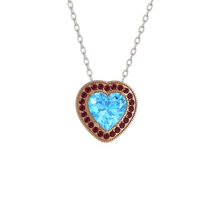 Akuamarin ve kök yakut 18 ayar rose altın kolye (40 cm beyaz altın rolo zincir)