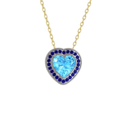 Akuamarin ve lab safir 18 ayar beyaz altın kolye (40 cm altın rolo zincir)