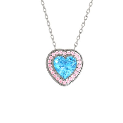 Akuamarin ve pembe kuvars 8 ayar beyaz altın kolye (40 cm beyaz altın rolo zincir)