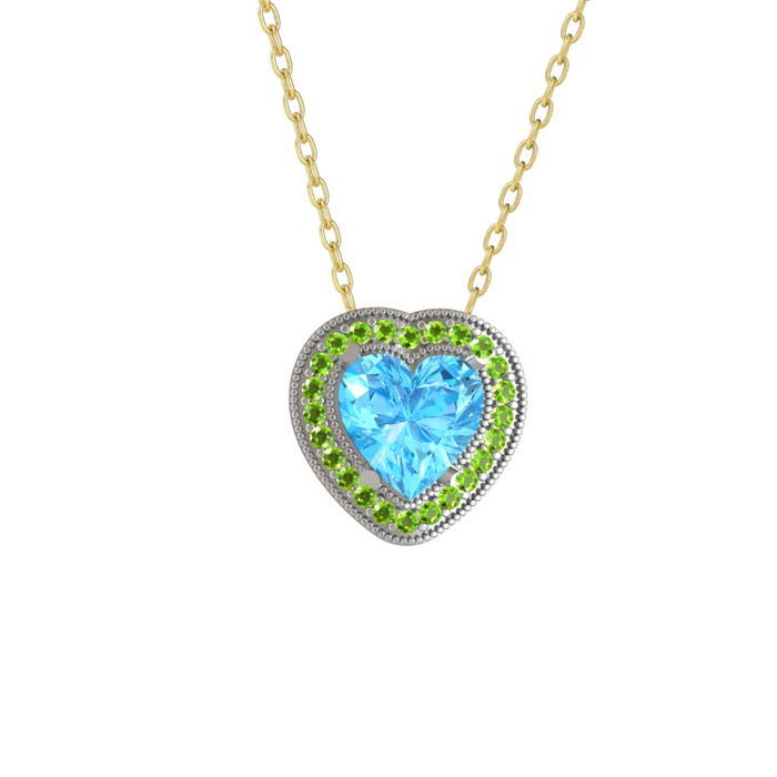 Akuamarin ve peridot 18 ayar beyaz altın kolye (40 cm altın rolo zincir)