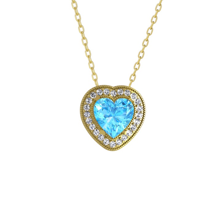 Akuamarin ve pırlanta 14 ayar altın kolye (0.264 karat, 40 cm altın rolo zincir)