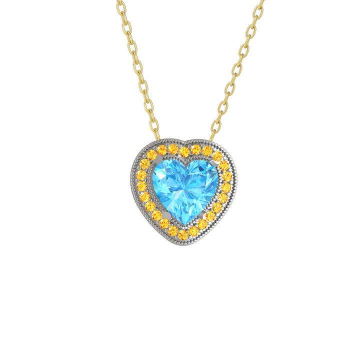 Akuamarin ve sitrin 14 ayar beyaz altın kolye (40 cm altın rolo zincir)