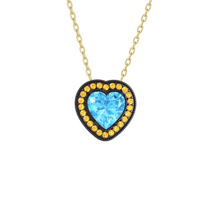 Akuamarin ve sitrin 925 ayar siyah rodyum kaplama gümüş kolye (40 cm gümüş rolo zincir)