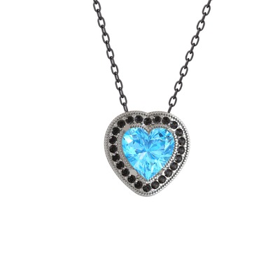 Akuamarin ve siyah zirkon 18 ayar beyaz altın kolye (40 cm gümüş rolo zincir)