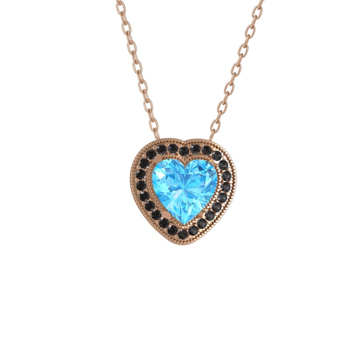 Akuamarin ve siyah zirkon 18 ayar rose altın kolye (40 cm rose altın rolo zincir)