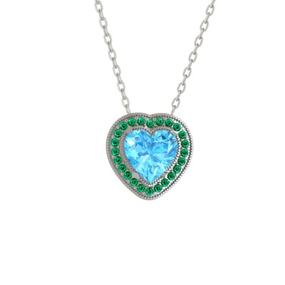 Akuamarin ve yeşil kuvars 14 ayar beyaz altın kolye (40 cm beyaz altın rolo zincir)