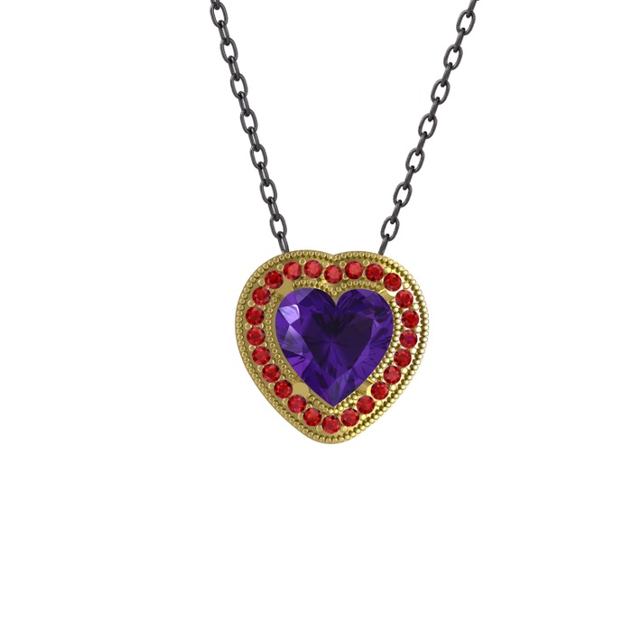 Ametist ve garnet 8 ayar altın kolye (40 cm gümüş rolo zincir)