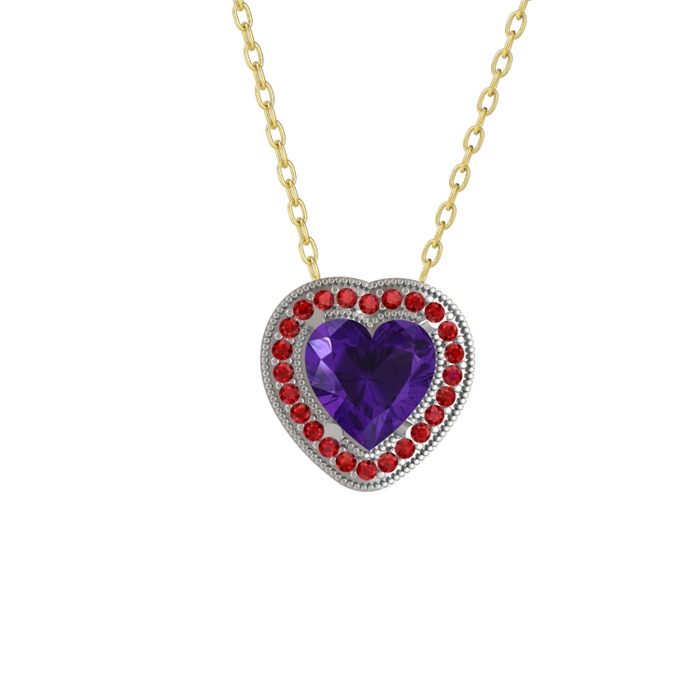 Ametist ve garnet 925 ayar gümüş kolye (40 cm gümüş rolo zincir)