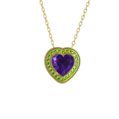 Ametist ve peridot 925 ayar altın kaplama gümüş kolye (40 cm altın rolo zincir)