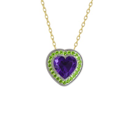Ametist ve peridot 925 ayar gümüş kolye (40 cm altın rolo zincir)