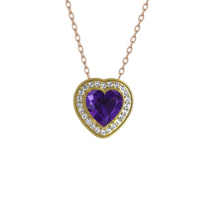 Ametist ve pırlanta 18 ayar altın kolye (0.264 karat, 40 cm rose altın rolo zincir)