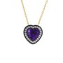 Ametist ve pırlanta 925 ayar siyah rodyum kaplama gümüş kolye (0.264 karat, 40 cm gümüş rolo zincir)