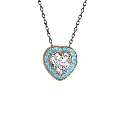 Beyaz zirkon ve akuamarin 18 ayar rose altın kolye (40 cm gümüş rolo zincir)