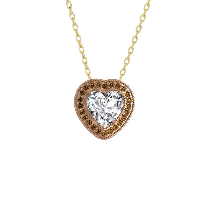 Beyaz zirkon ve dumanlı kuvars 18 ayar rose altın kolye (40 cm altın rolo zincir)