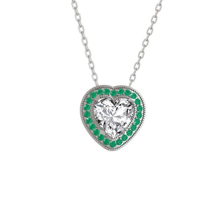 Beyaz zirkon ve kök zümrüt 8 ayar beyaz altın kolye (40 cm beyaz altın rolo zincir)