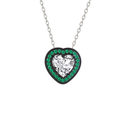 Beyaz zirkon ve kök zümrüt 925 ayar siyah rodyum kaplama gümüş kolye (40 cm beyaz altın rolo zincir)
