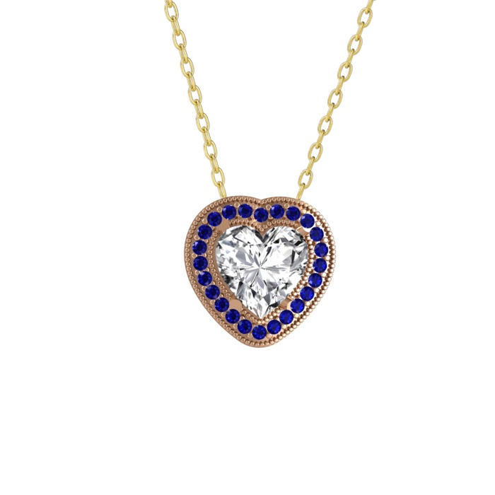 Beyaz zirkon ve lab safir 925 ayar rose altın kaplama gümüş kolye (40 cm gümüş rolo zincir)