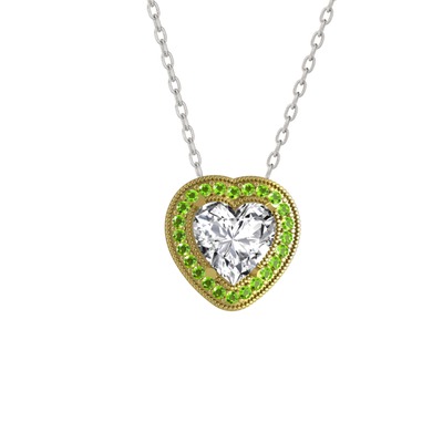 Beyaz zirkon ve peridot 8 ayar altın kolye (40 cm beyaz altın rolo zincir)