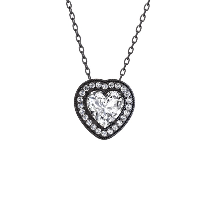 Beyaz zirkon ve pırlanta 925 ayar siyah rodyum kaplama gümüş kolye (0.264 karat, 40 cm gümüş rolo zincir)