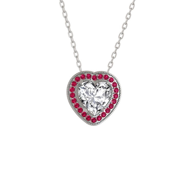 Beyaz zirkon ve rodolit garnet 8 ayar beyaz altın kolye (40 cm beyaz altın rolo zincir)