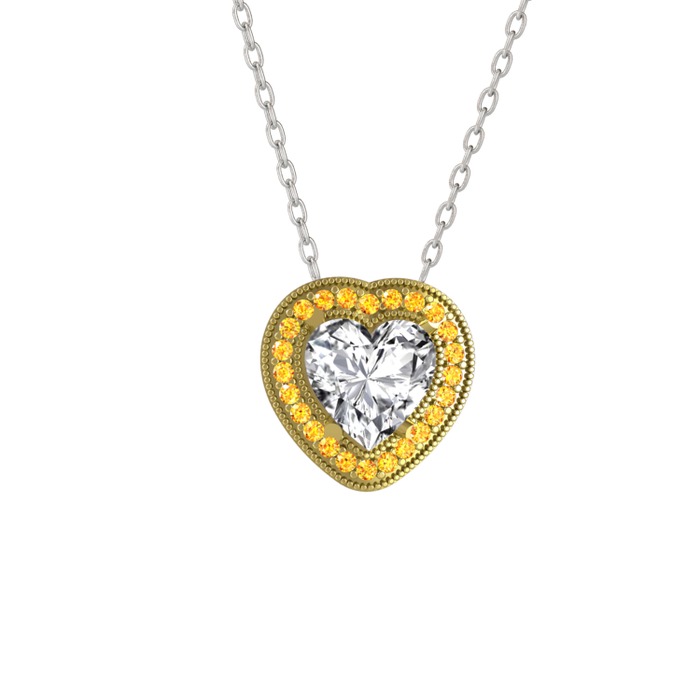 Beyaz zirkon ve sitrin 8 ayar altın kolye (40 cm gümüş rolo zincir)