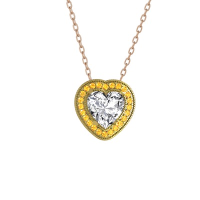 Beyaz zirkon ve sitrin 8 ayar altın kolye (40 cm rose altın rolo zincir)