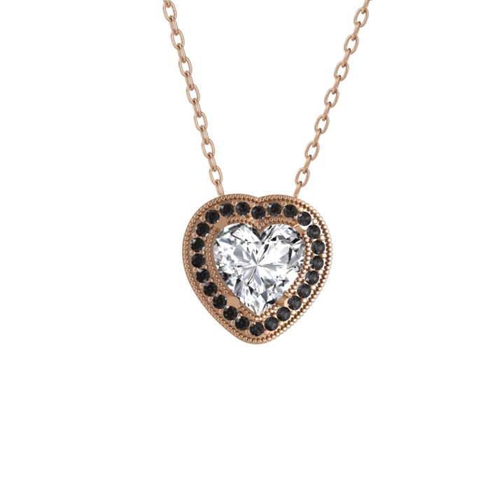 Beyaz zirkon ve siyah zirkon 18 ayar rose altın kolye (40 cm rose altın rolo zincir)