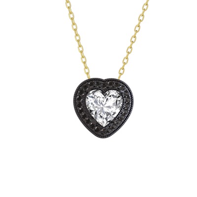 Beyaz zirkon ve siyah zirkon 925 ayar siyah rodyum kaplama gümüş kolye (40 cm altın rolo zincir)